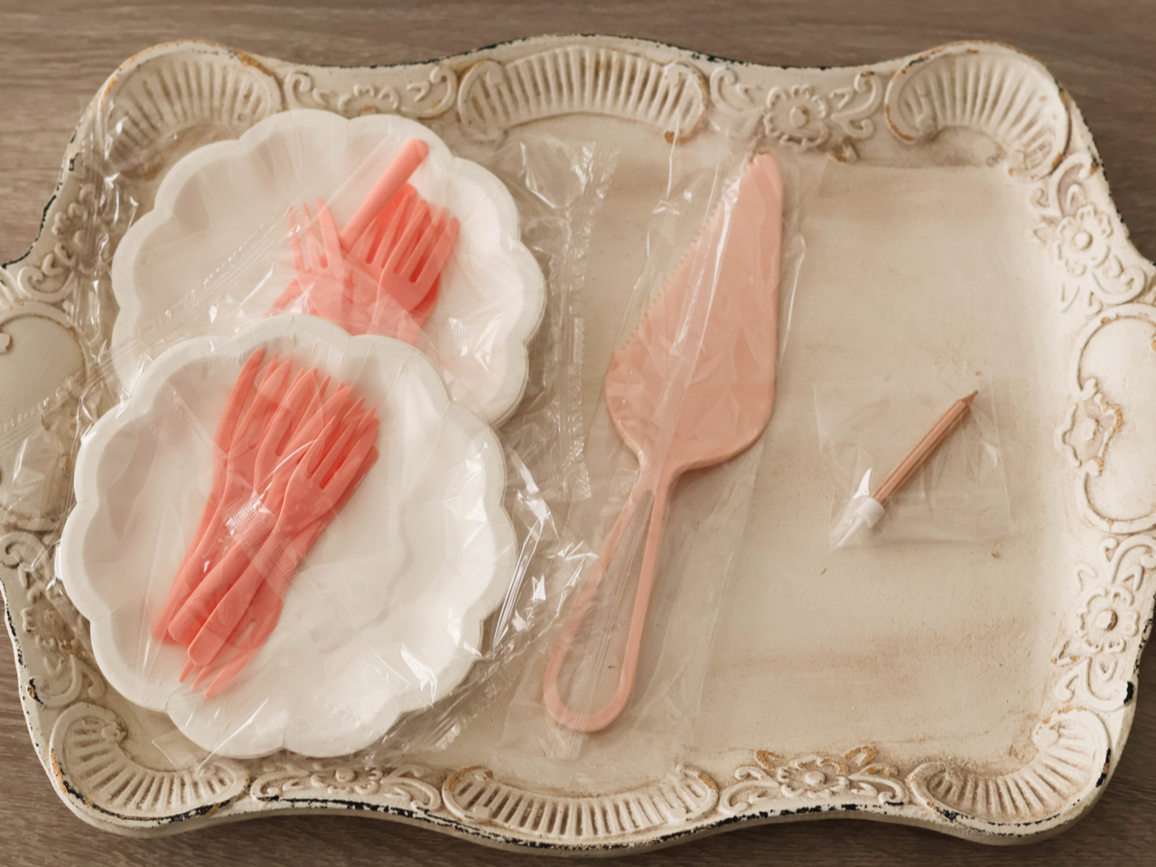 附上六入餐盤(2組)、蛋糕刀、一根直立式蠟燭